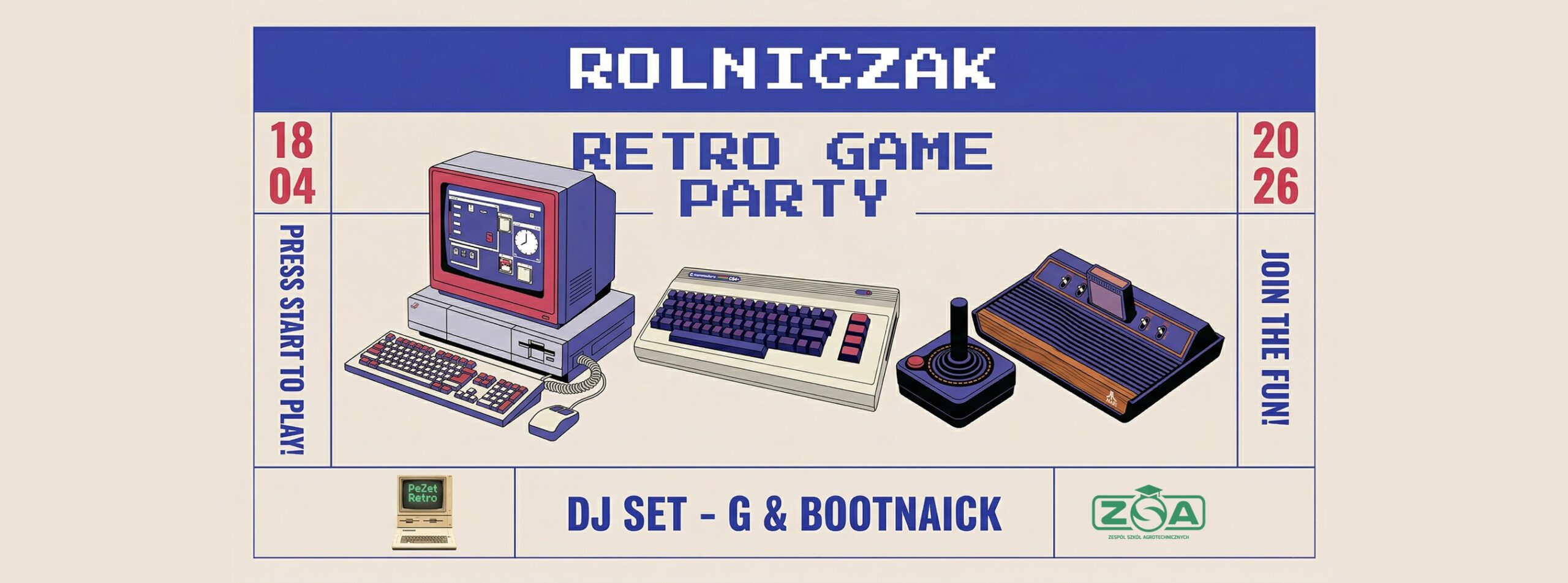 PeZet Retro i Rolniczak zapraszają na wyjątkowe wydarzenie – RetroGame Party, podczas którego przeniesiemy się w klimat lat 80. – czasu rodzącej się fascynacji komputerami domowymi i grami. Każdy będzie miał okazję zasiąść przed kultowymi komputerami: Commodore, Amiga, Atari oraz pierwszymi konsolami typu Pong i Pegasus.